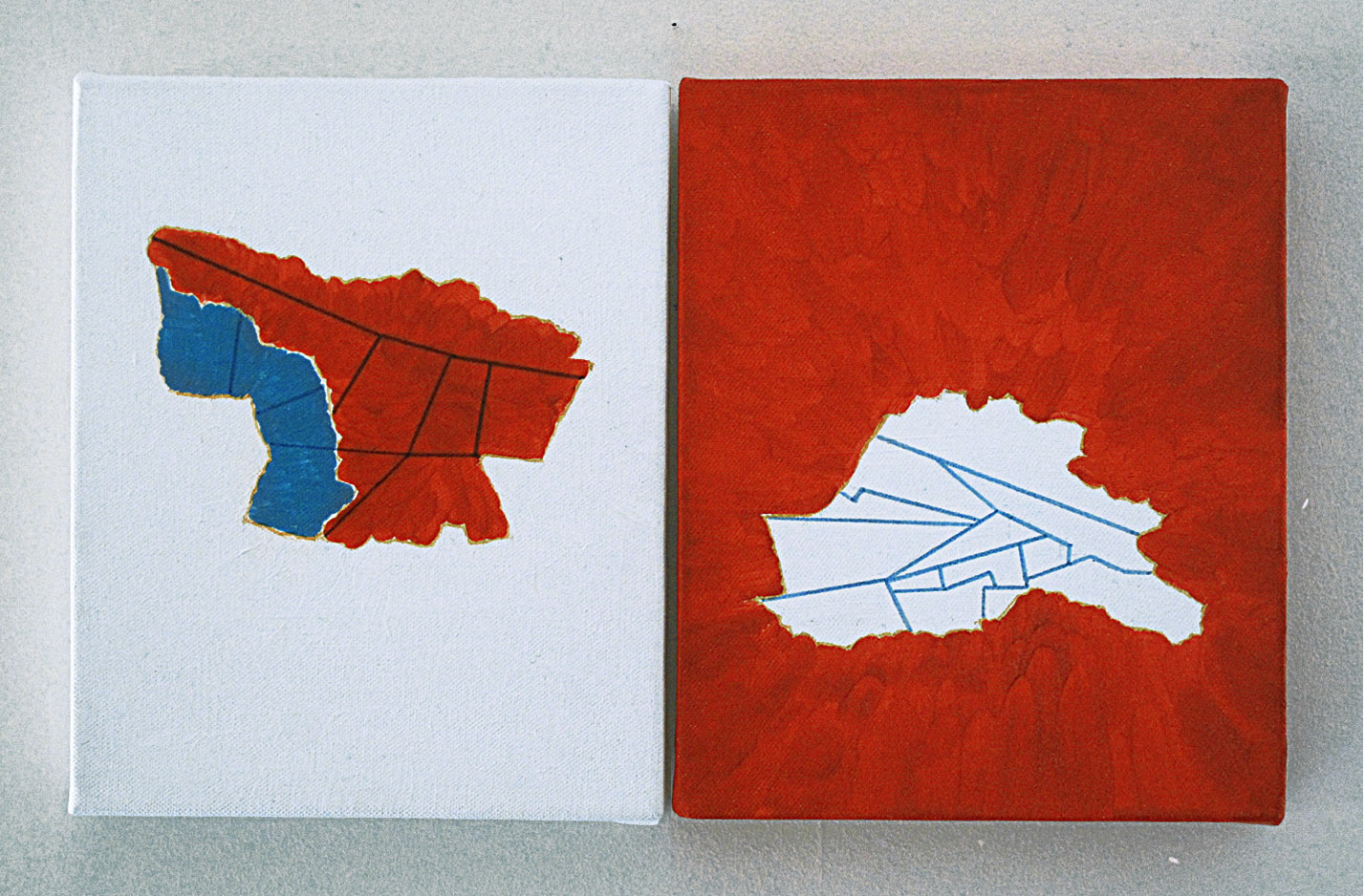 A two-part diptych painting “F.S.R.G. (Found Sedimentary Resources Gained)” refers to the license blocks of oil and gas in the Former Soviet Republic of Georgia.